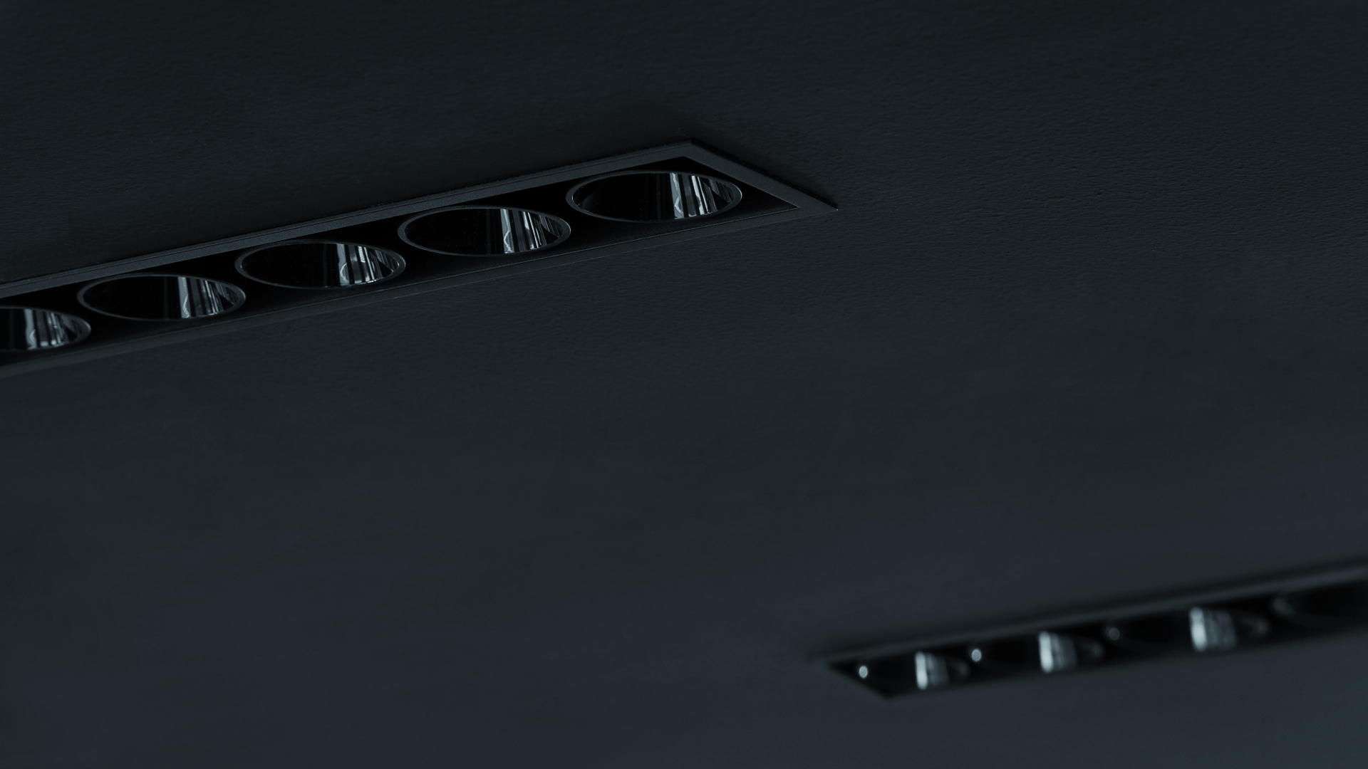 Black Foster brings ‘The Invisible Black’ effect to a recessed lineal luminary, available in trimless version as well. Its ultra-thin bezel creates a visually trimless aesthetic when illuminated, emphasizing refinement and visual comfort.
