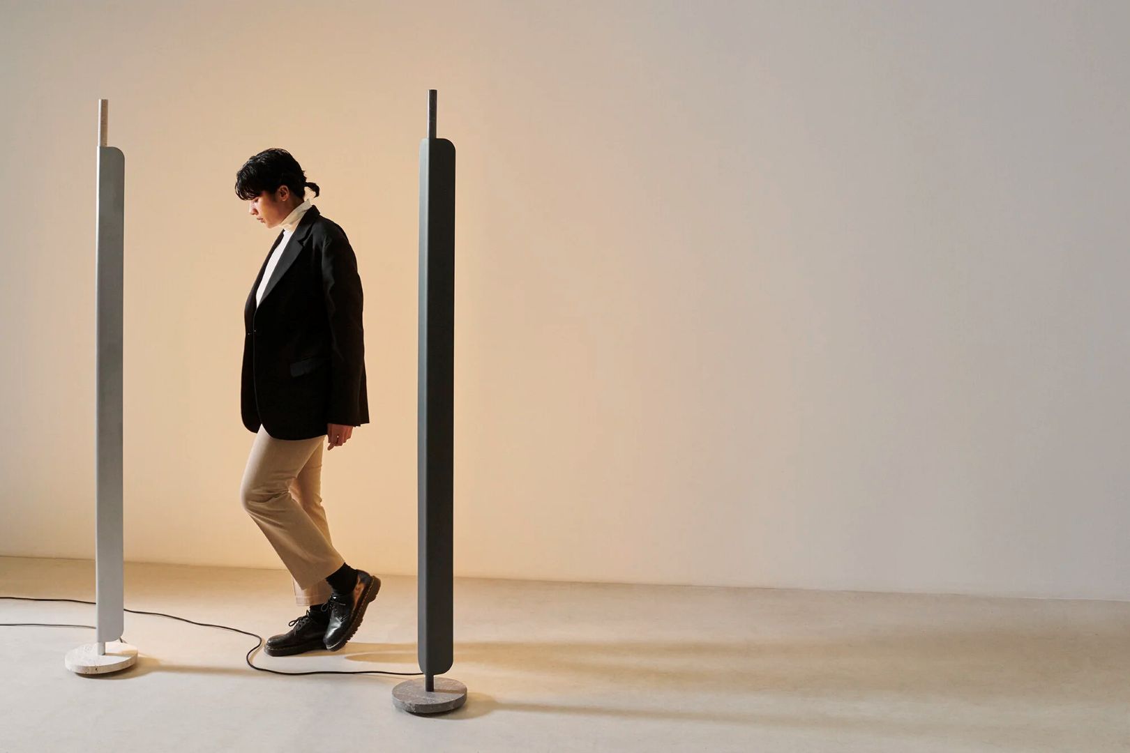 A freestanding, dimmable LED light source. Designed to cast light onto a wall, infusing any space with a warm ambience.