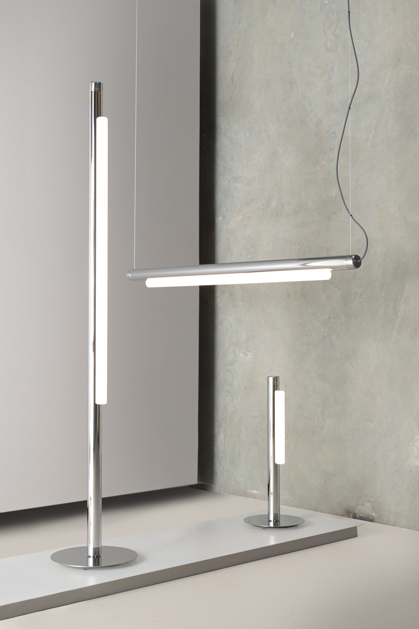 The Pipeline 125 floor lamp exhibit a striking, elegant, and determined aesthetic. It gracefully balance on chrome mirror weighted bases, giving the illusion of levitation.