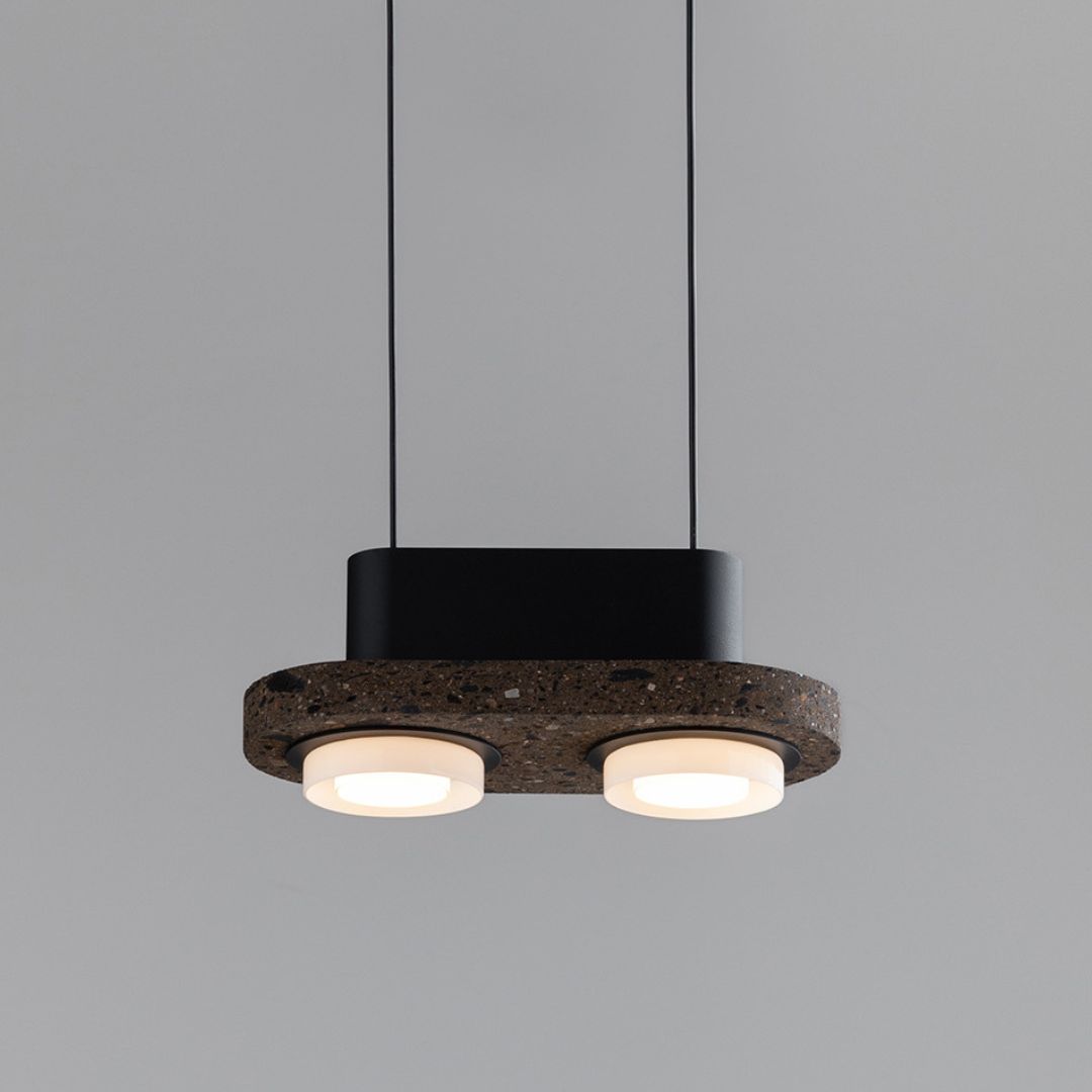 The new series of light sculptures named “Ambra Toba” combines volumes of ancient stones and aluminium. Centerpiece is the Mexican “Toba volcánica” stone that consists of minerals, glass and volcanic debris ejected one million years ago during severe eruptions. Fragments in the geometrical surfaces are testament to these explosions and movement. The contrast between porous textures and smooth dark red underlines the studios contemporary approach on traditional materials and craft. The connecting components between the sculptural stone elements and the aluminium parts originate from an intensive research of linking unique handmade shapes with industrial parts.