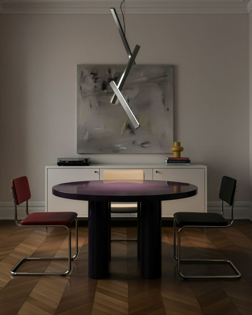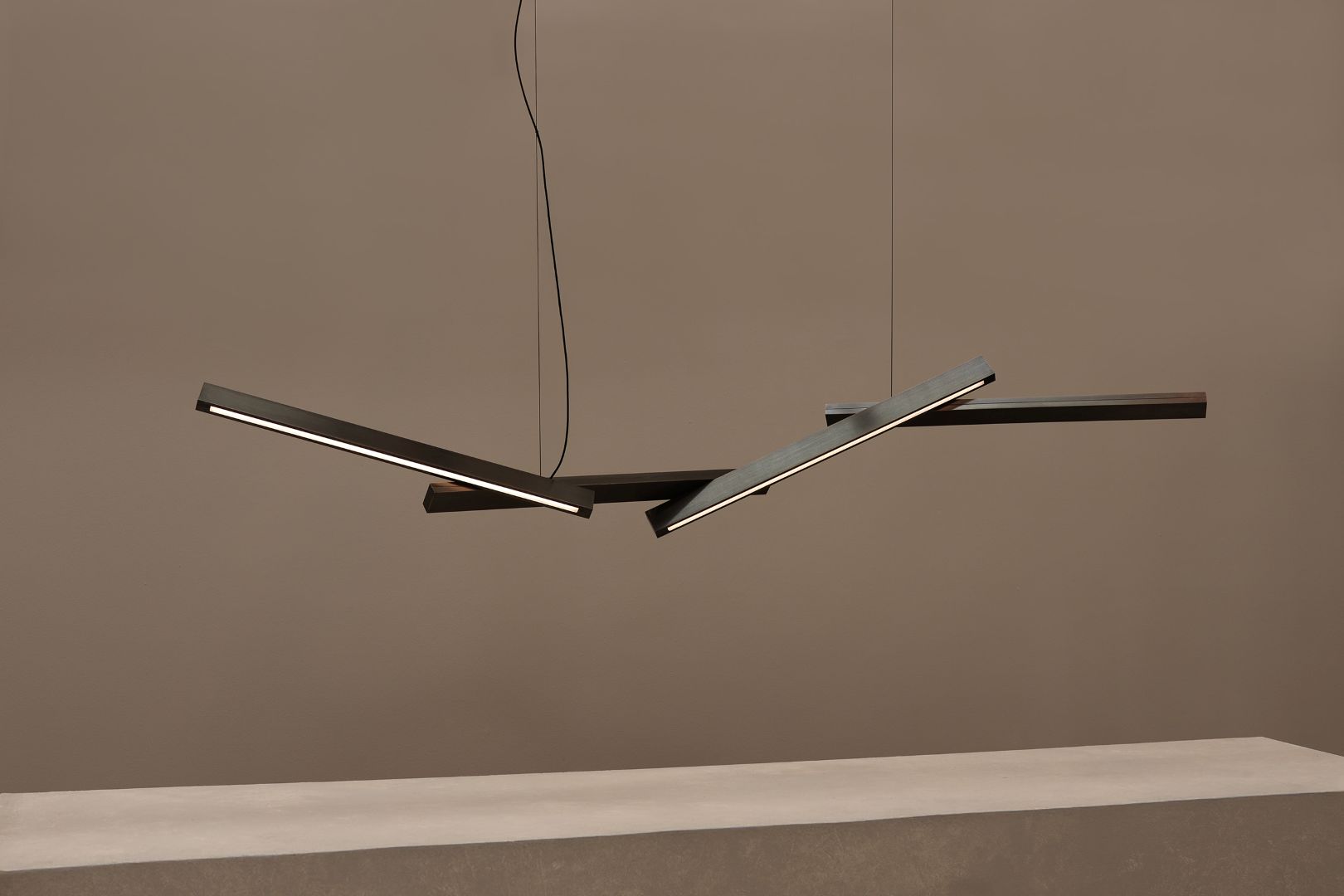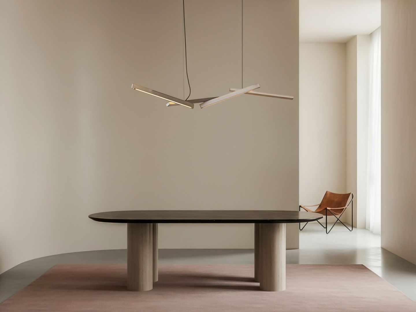 With clean intersecting forms and a brushed metal finish, the Bloc Pendant offers a refined architectural presence. Its soft ambient light brings warmth to contemporary interiors.