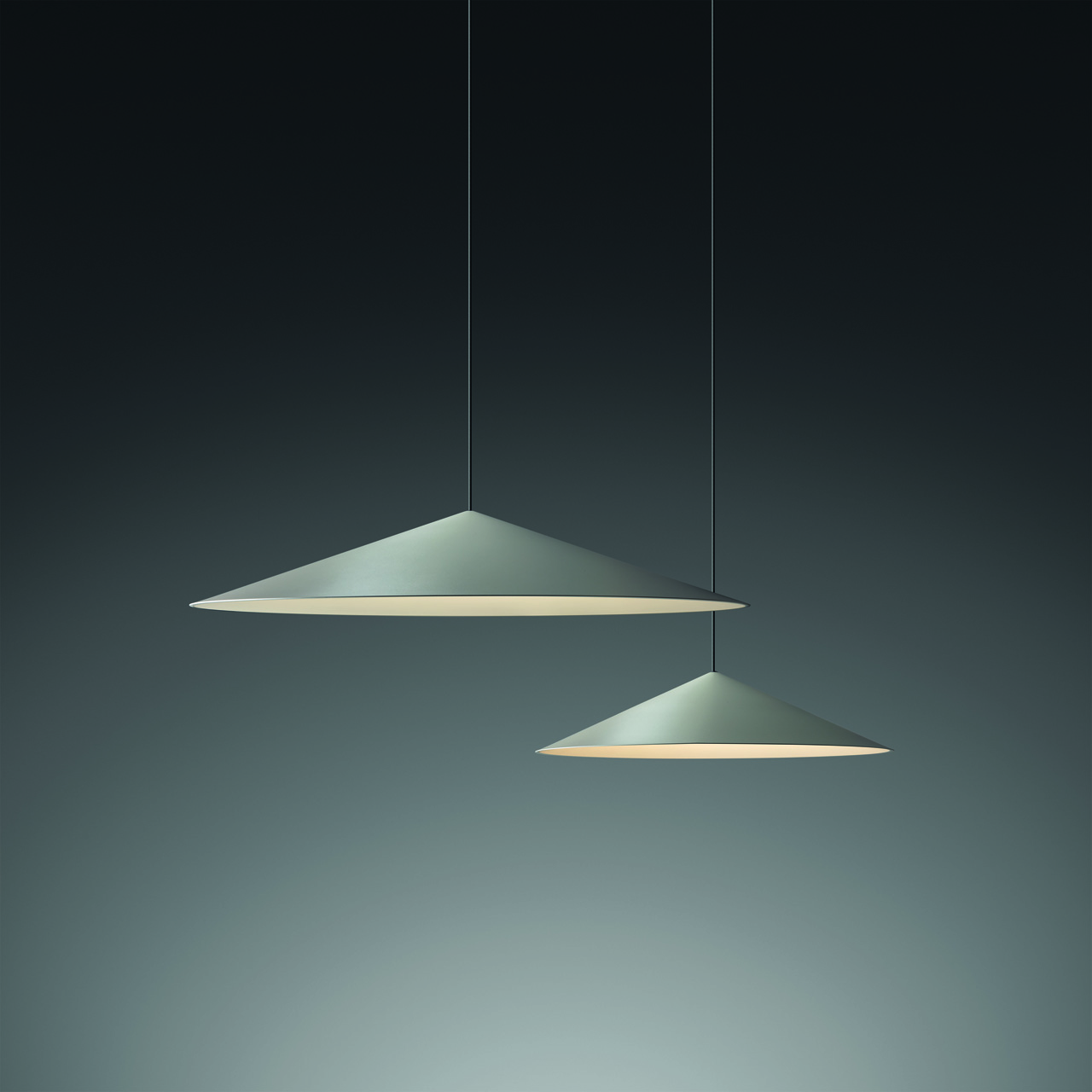 The Dune suspension luminaire dresses the light and shapes the space with its conical, classic, and light silhouette.