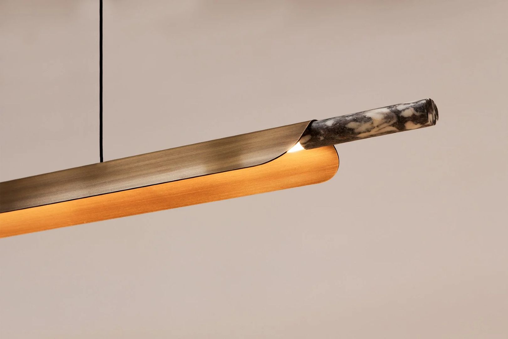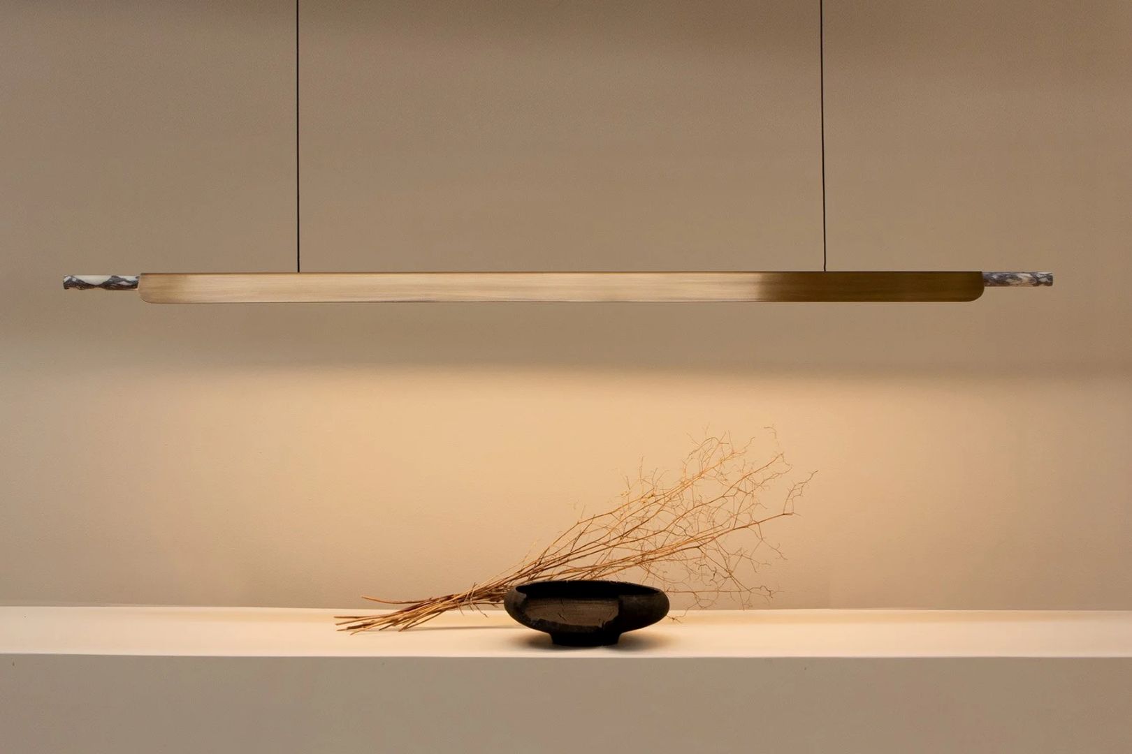It features high-output LED modules with a matte acrylic diffuser and an integrated directional fin to minimise glare and enhance visual comfort in professional environments. A marble end detail and refined construction introduce a subtle, premium aesthetic.