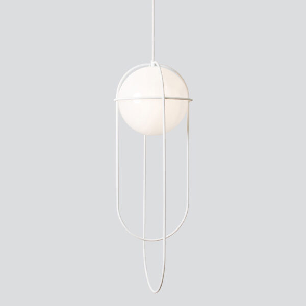 The Orbit series draws inspiration from the sun with an opalescent glass globe encased in a wire cage, resembling a planetary maneuver. The pendant version can be suspended as a single fixture or in multiples, offering versatile lighting options.