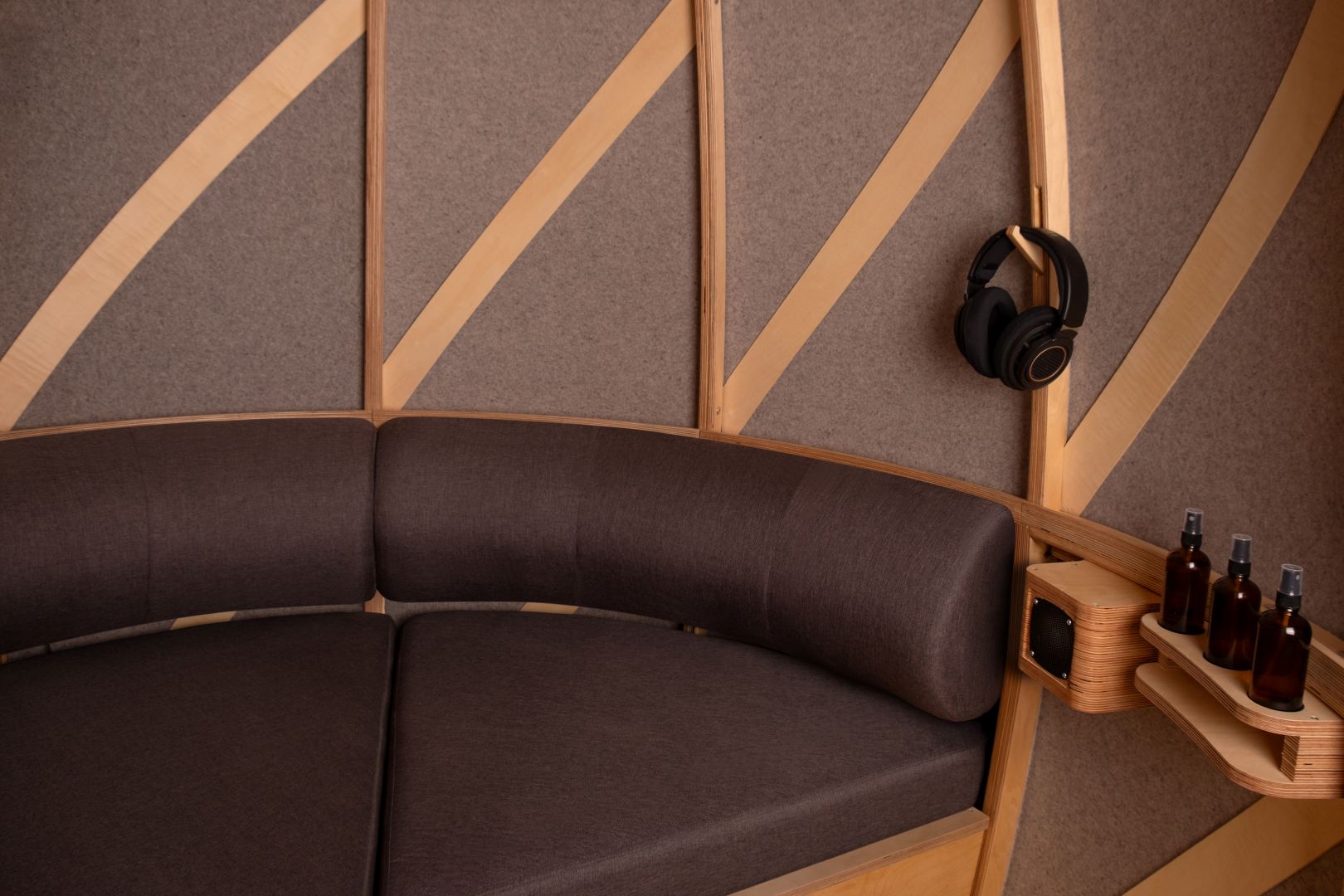 The Iris is a calm-inducing meditation pod designed for both commercial and residential use. Ideal for workplaces, apartments, wellness centres, lounges, retail spaces and homes, Iris creates an optimised, womb-like sanctuary for immersive experiences. Through a seamless blend of sound, guided meditation, dynamic lighting and aromatherapy, The Iris helps calm the mind, restore energy and enhance overall performance.