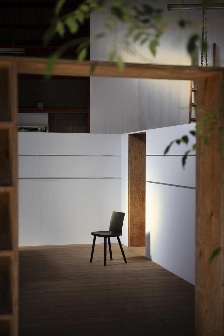 “Blest,” designed by Anderssen & Voll, features a sturdy chair construction inspired by Japanese design. It includes a milled solid wood back attached to the seat with a finger joint, resembling a sail or banner fluttering in the wind. The name “Blest” is Norwegian for wind.