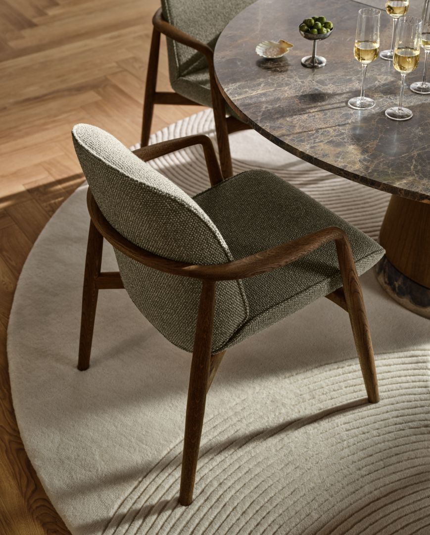 The Bowie dining chair is made for those long dinners where the conversation lingers and no one’s in a rush to leave. A natural extension of the Bowie series, the chair carries the same design DNA. Fully moulded with high-quality foam, the chair offers a soft yet supportive seat. Designed with a removable cover, it’s easy to clean and lets you refresh the look over time. Crafted from FSC™-certified solid oak, the design features a frame that flows effortlessly from the legs through the armrests and around the backrest, giving the chair a light and sculptural feel. The Bowie dining chair values both comfort and craftsmanship – making it a perfect fit around the dining table, in the meeting room, or in a creative workspace.