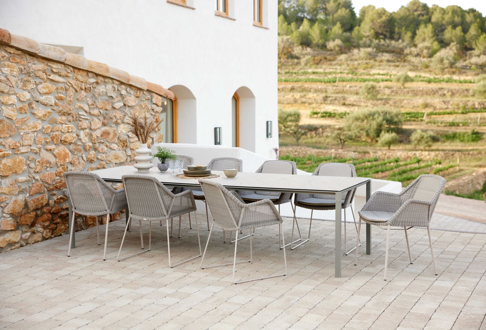 The Breeze dining chair is designed by the dynamic Danish duo STRAND+HVASS. The Outdoor chair combines beautiful and elegant lines with great comfort and requires a minimum of maintenance. The angled legs, as well as the meticulously woven lines all contribute to the end product; a chair that not only looks great, but also doubles as an incredibly comfortable dining chair. Combine the luxurious Breeze chair with for example a minimalistic Pure table, to create a stylish, yet comfortable, modern dining area.