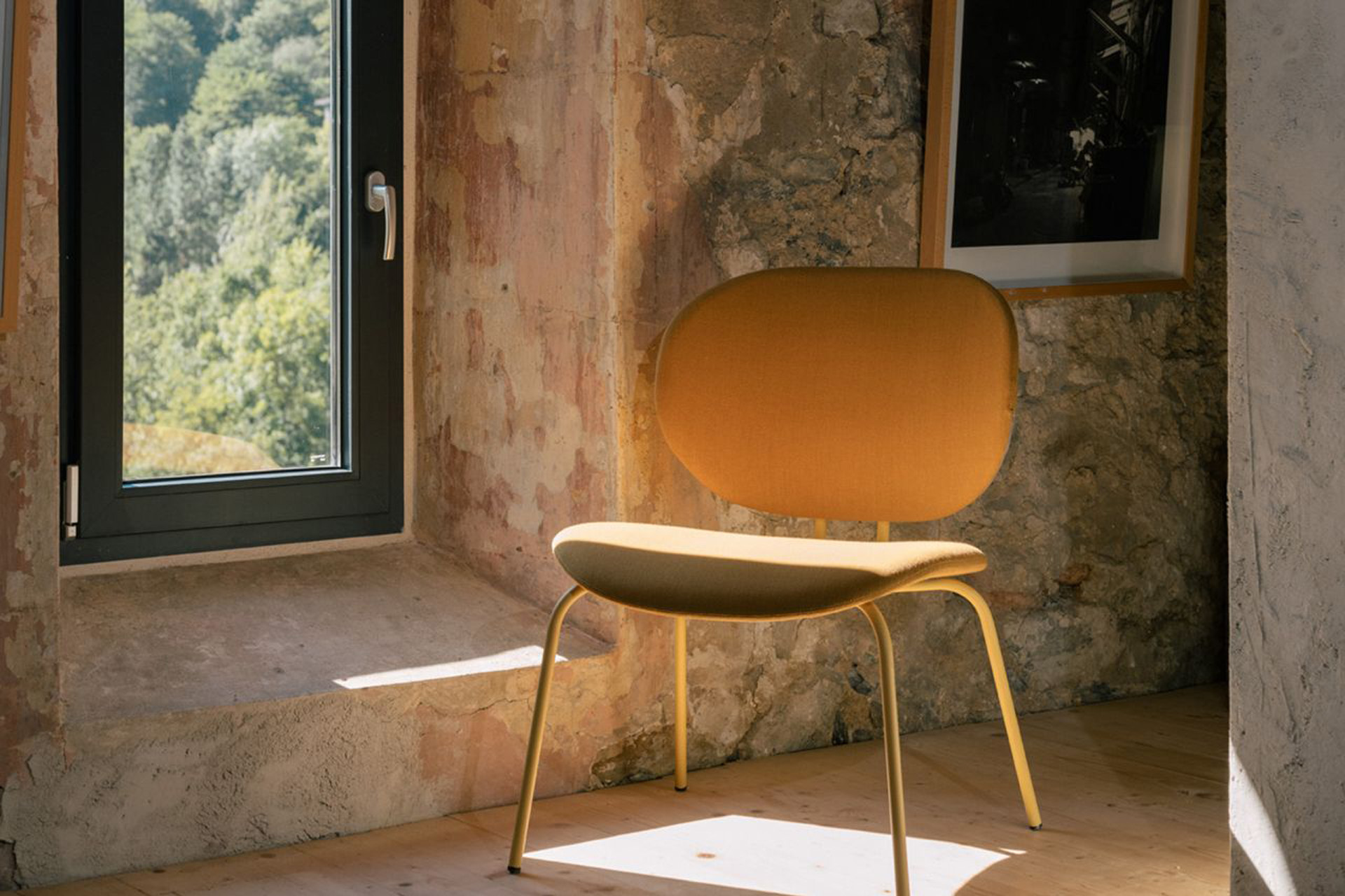 The Hari XL chair draws inspiration from textile looms, merging an industrial aesthetic with delicate threads for a subtle, elegant design.