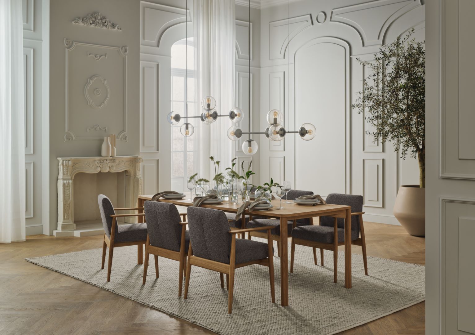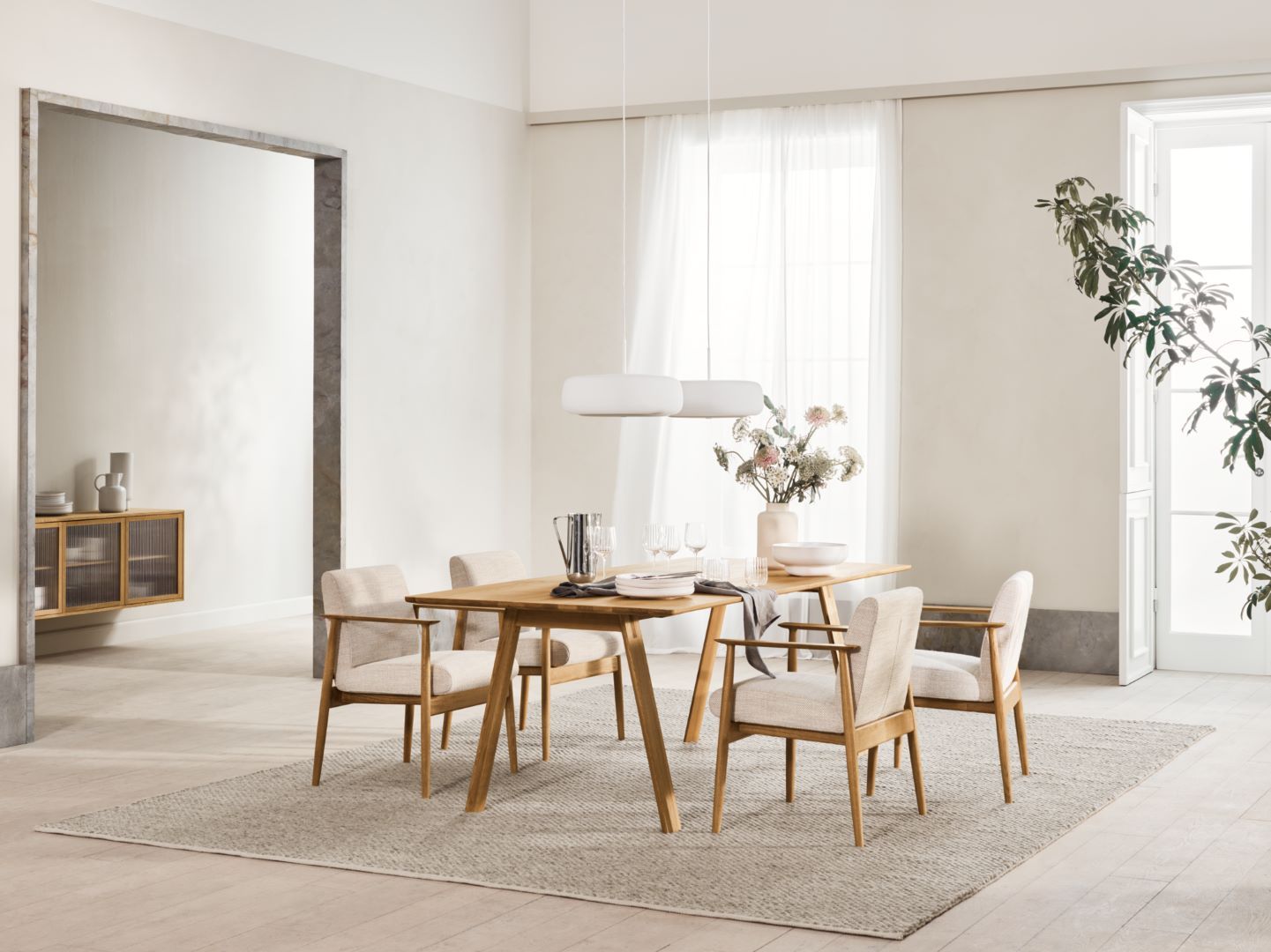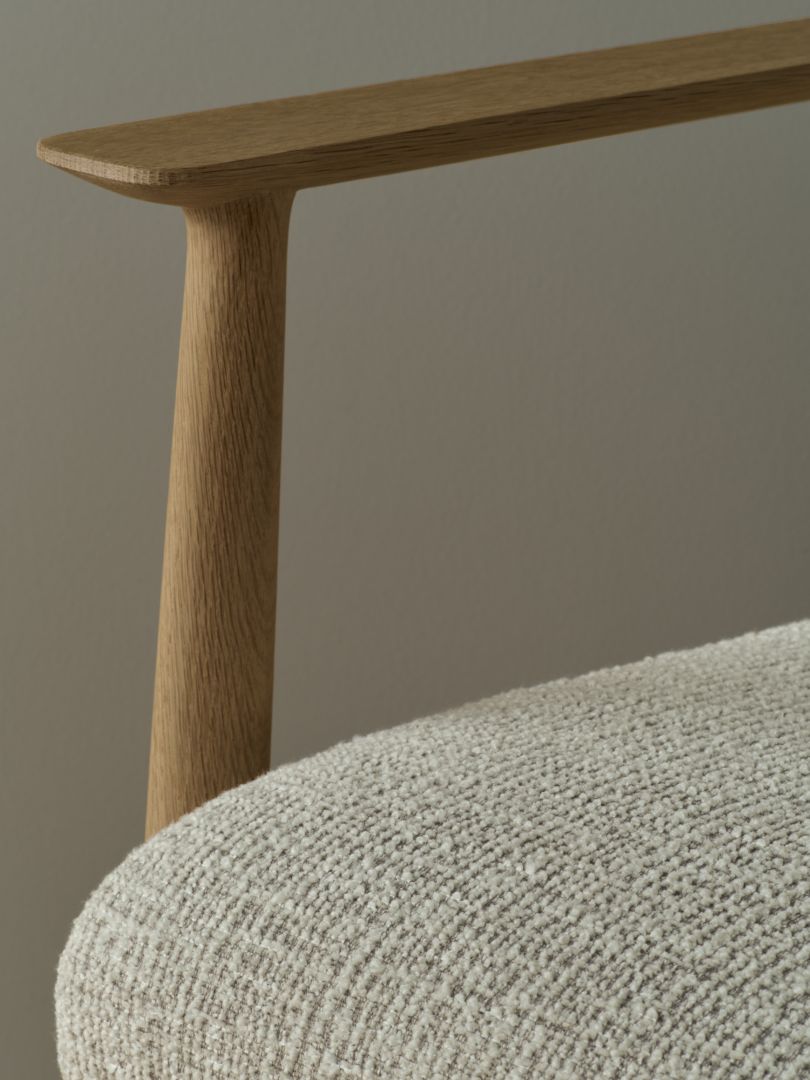 The Visti chair creates a luxurious and refined atmosphere in the dining room. An inviting armchair with a distinctive yet familiar style, inspired by the classics of Scandinavian mid-century design but with a decidedly contemporary twist. The seat is constructed for maximum comfort in durable moulded foam and floats within the crafted frame in solid FSC™-certified oak. Tailormade to fit your interior in your choice of upholstery fabric.