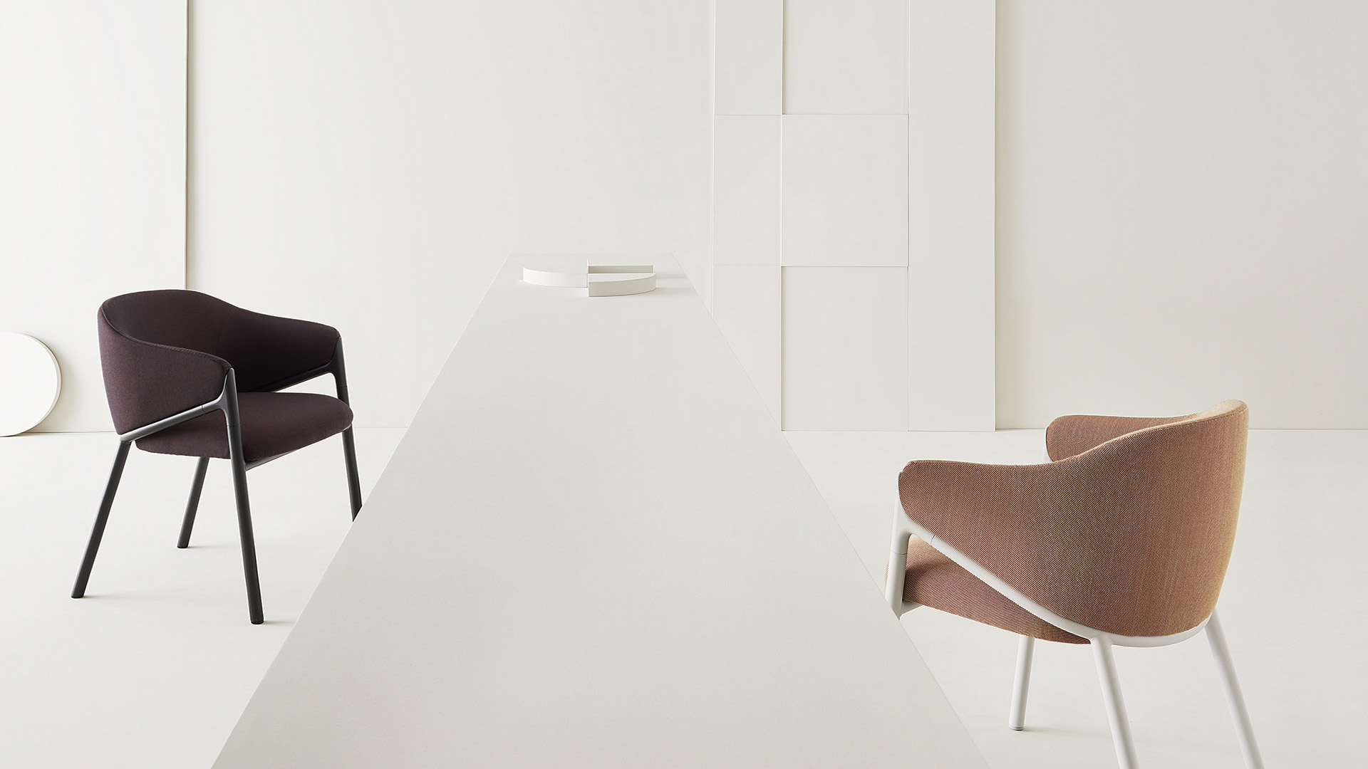Favaretto & Partners Studio’s Hammer is an elegant creation in steel, aluminum, and polyurethane. Available in fabric, leather, or faux-leather, with an optional swivel feature, it adds sophistication to contract spaces like lobbies, meeting rooms, hotels, and collaborative areas.