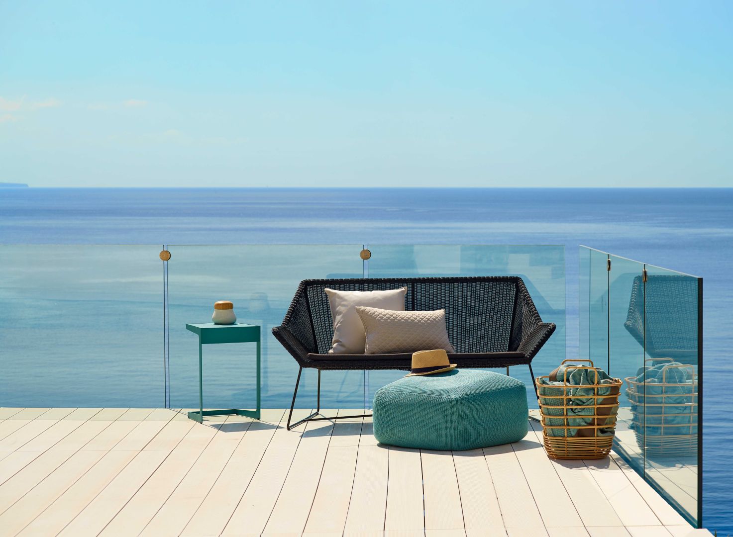 The popular Breeze sofa is designed for two. The Breeze 2-seater sofa is a natural extension of the light and stylish Breeze collection. The 2-seater Breeze sofa has inherited the elegance, lightness and look of the original Breeze products. The Breeze 2-seater sofa can be used as a stand-alone item in places where you wish to unwind and relax, in combination with the other Breeze chairs, or as a mix-and-match sofa combined with other Cane-line products. The Breeze sofa is available in black and white-grey Cane-line Weave® with seat cushions in a range of colours. The Breeze 2-seater sofa is designed by Strand+Hvass.