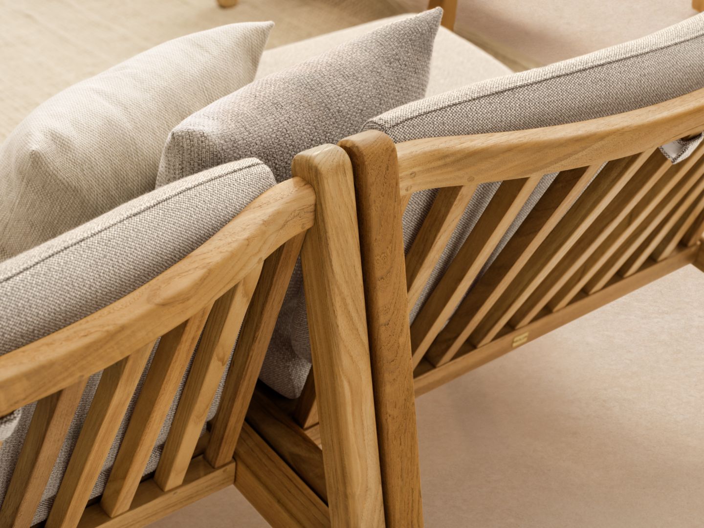Crafted from solid, FSC™-certified teak, renowned for its durability and warm aesthetics, the teak will naturally develop a gray patina over time if left untreated, giving it a weathered look. To maintain its rich golden-brown color, regular oiling is recommended. For ultimate comfort, enhance your outdoor experience with our matching cushion series, Patio cushions. Showcasing honest construction and thoughtful design, the series invites appreciation from every angle while encouraging you to create memorable moments in your outdoor space.