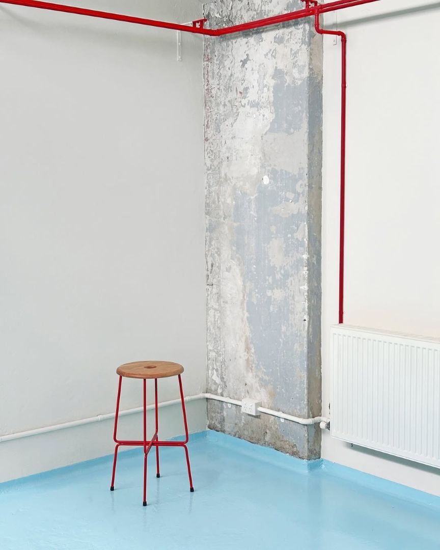 The Greene High Stool features a crossed footrest with the wire legs folding together to form the shape. The design features the new doughnut timber seat. Available in 28 frame powder-coat colours and a range of timber options. Outdoor Greene High Stool available by request.
