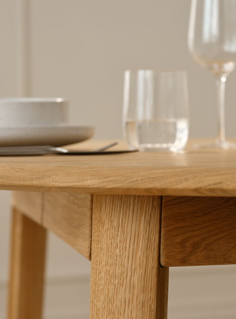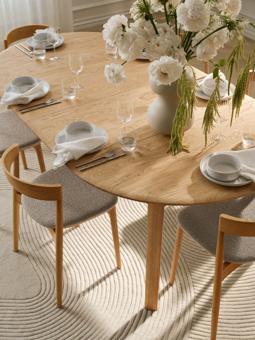 Timeless design meets solid wood craftsmanship. That’s the story behind the Palo dining table series made from solid, FSC™-certified oak with refined details. Available in both fixed and extension styles, the tabletop showcases elegantly arranged planks that harmonise beautifully with a range of interiors. The soft, continuous curves of the legs and edges add a touch of refinement, while the durable construction ensures longevity. Perfect for any dining experience, whether it’s a small, relaxed gathering with friends or a larger family dinner.