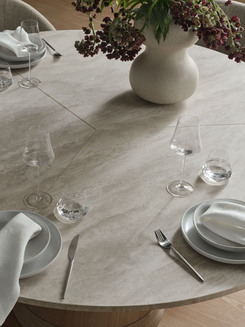 Piro was designed with the aspiration to create a table as the natural gathering place for family and friends, using only the finest natural materials – solid marble and oak. The carefully selected wood ensures perfect grain patterns to give the design a serene look. Following classic design principles, the conical column firmly rests on the floor with a substantial marble base, visually anchoring the table for stability and calm. A table that will last for generations.